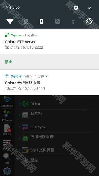 4、这两个功能需要点击左侧的FTP Server和lan功能,然后通知栏就会出现通知图标了;