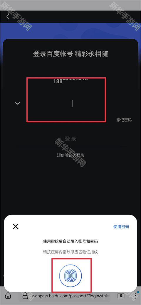 4、最后在百度网站中进行登录账号时,使用指纹验证后就会自动添加账户和密码了