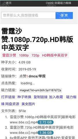 磁力蜘蛛app上的资源很多,能支持大家的线上新鲜玩法,随时准确的找到你想要观看的各种资源。