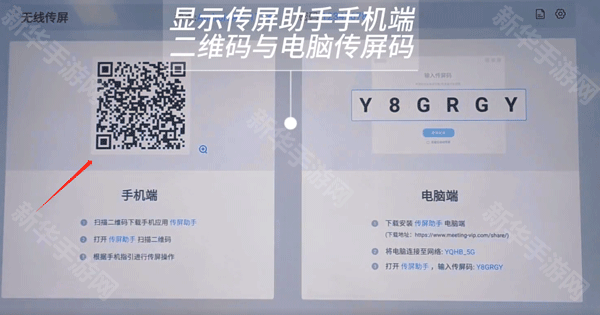 2.然后选择“手机传屏”用手机扫描大屏上方出现的二维码,