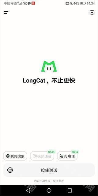 longcat 大模型这款软件给用户带来了有趣智能的体验,采用最新的AI语言处理技术的智能AI聊天机器人,给用户在无趣的生活中带来了丰富的精彩瞬间,他可以和你成为好朋友,进行交流聊天,生活中充满乐趣。