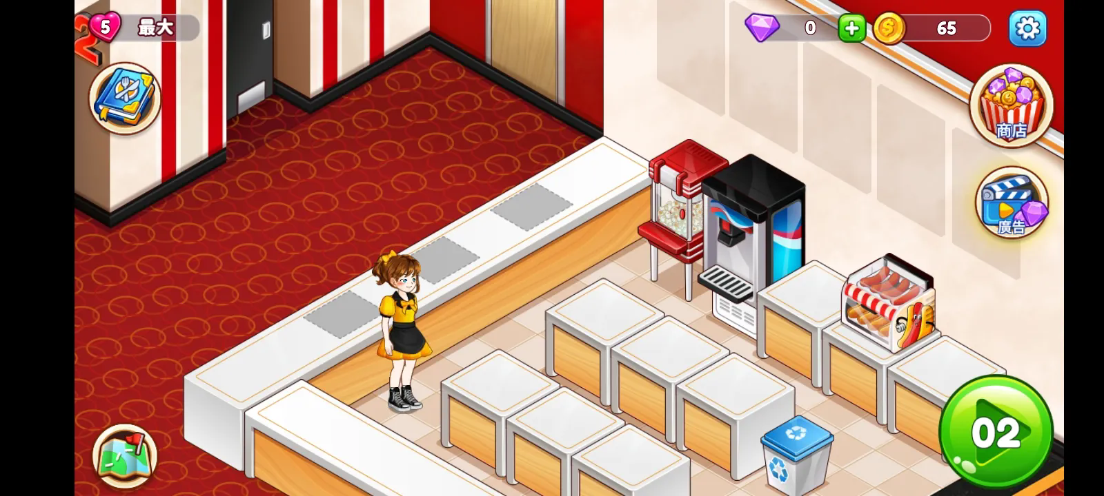 1.从你的第一家电影院开始,快速为顾客服务,升级你的厨房设备,提供小吃。