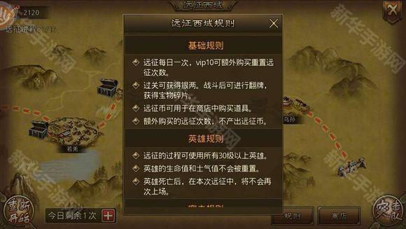 遇到等级提升比较困难的时候,实力一日不能大增,可以合理使用远征西域规则,前一天匹配,然后养精蓄锐,可以第二天再打,远征西域可以保留一次,不会随着系统更新