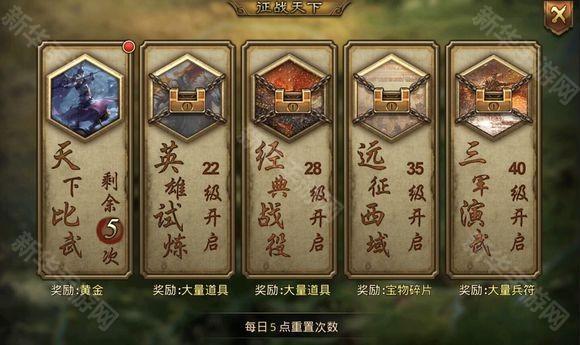 每日更新为凌晨5点,登陆之后,先点征战,然后进入远征副本第一关乌孙,让系统根据当前战力匹配npc守关部队,然后不打,退出后,完成日常任务,提升实力,然后杀敌