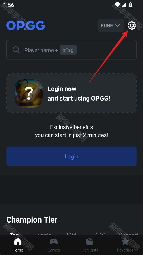 1、进入opgg英雄联盟查询后在首页位置点击右上角的设置