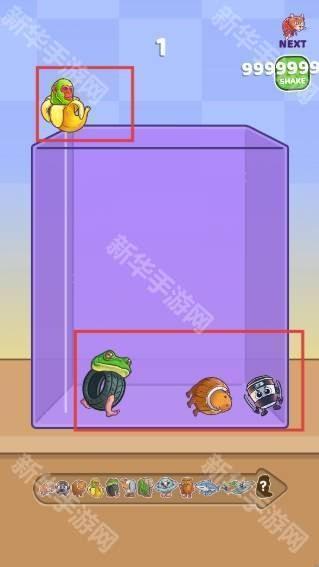 2、观察容器内角色,将上方新角色放入,尝试让相同角色靠近,为合并做准备。