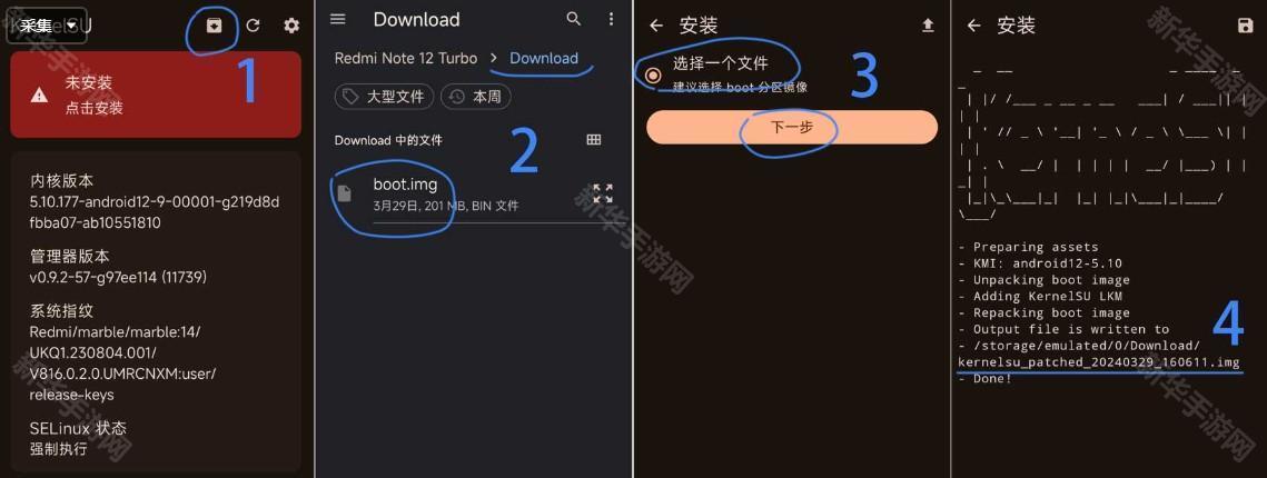 修补生成的文件kernelsu_patched-xxx.img在Download目录