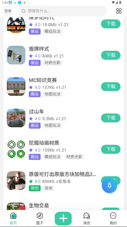 3.提供模组、地图、皮肤和素材包等MC资源,支持一键式高速下载。
