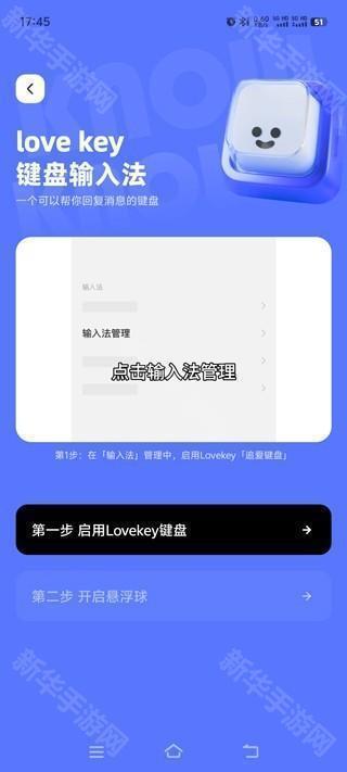 1、在本站下载后打开Lovekey键盘输入法,点击启用键盘;