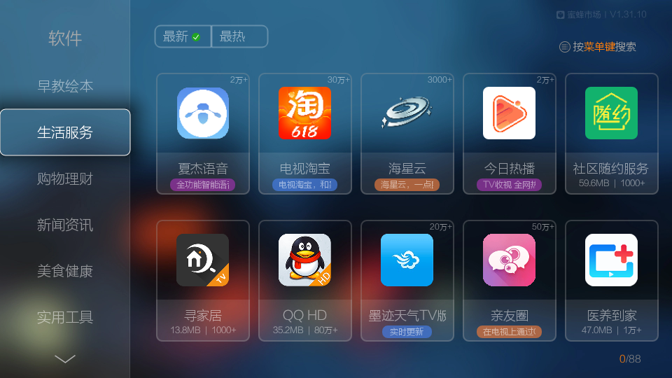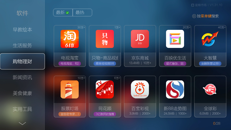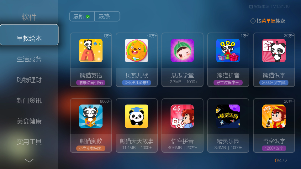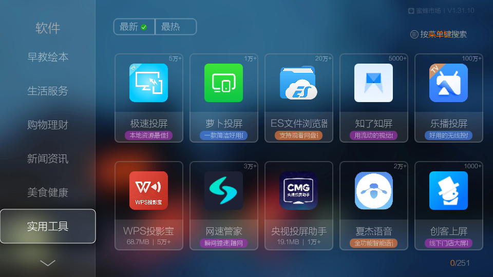 《蜜蜂市场》这是一款非常优秀的电视端视频软件,其不仅仅能够进行视频播放,同时哎呦海量的优秀和软件,在这款蜜蜂市场里面还有很多的支持功能,蜜蜂市场能够支持小米、乐视、创维、天猫魔盒、TCL、康佳、海信、长虹等等品牌的电视,能够为用户带来非常优秀的使用体验,在加上这款蜜蜂市场软件的优秀使用内容,喜欢的用户快来下载蜜蜂市场吧!