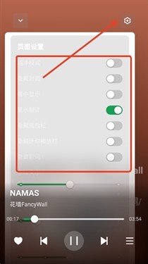 4、点击上方设置图标,可以对于听歌界面进行参数设置。