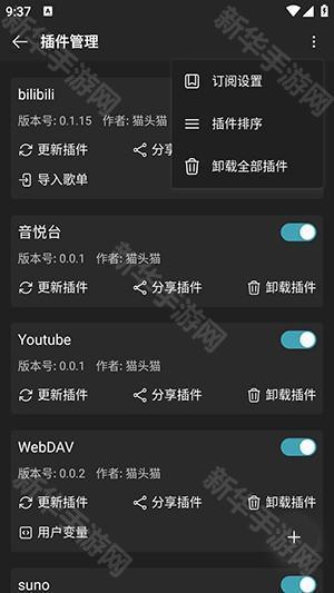 2、在插件管理页面,点击右上角的三个点,选择订阅设置。
