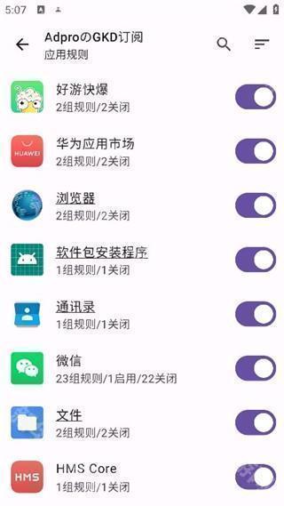 订阅社区规则:访问GKD官方规则库或第三方仓库(如aisouler规则集),搜索关键词(如“微信广告”“悬浮广告”)导入现成规则。