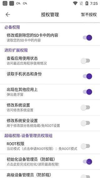 应用详情,版本,大小,运行库,签名,内存占用,流量消耗..一键冻结?组件管理,权限管理,伪装卸载,精简,看你所看,做你想做