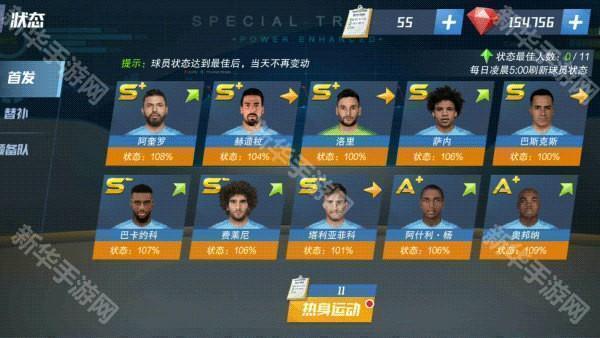 4、16级球员状态功能开启,最高可以将球员状态刷到110%,额外加成多10%的属性,前期好像作用不大,后期感觉才会有用