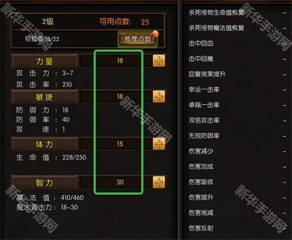 玩家有可用点数时,可以给自身力量、敏捷、体力、智力等基础属性加点,提升生命值、攻击力。