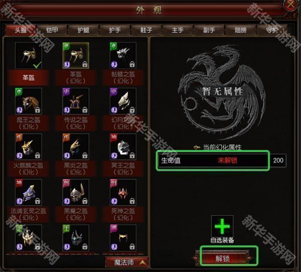 不同的装备具有不同的属性,玩家穿戴可增加自身生命值、防御力、甚至是魔法攻击加成。