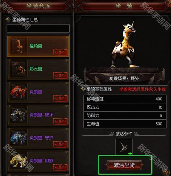 激活坐骑可获得大量属性,不同坐骑属性可以叠加生效。