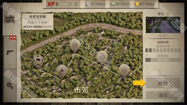 5、然后选择关卡,这里需要完成一个任务,给养宝物箱,然后点击开始;