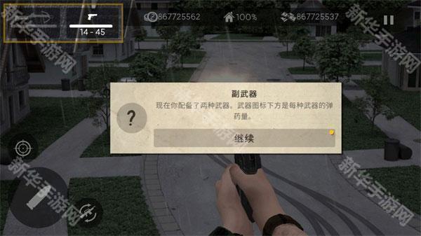 6、现在你配备了两种武器,武器图标下方是每种武器的弹药量,要在武器间切换,可以轻触“切换武器”按钮;