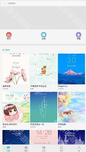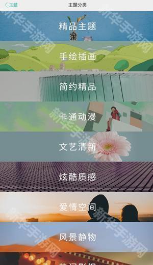 2、在主题这里,有精品主题、手绘插画、简约精品、卡通漫画、文艺清新等多种主题;