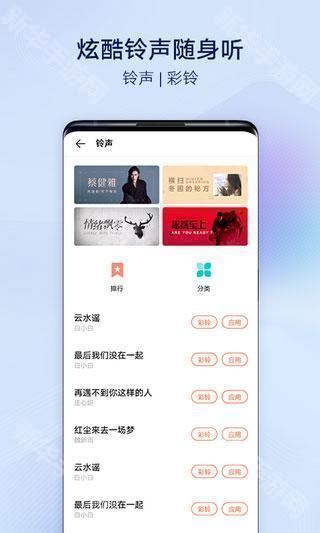 5、点开铃声,有彩铃、来电、短信、闹钟、整蛊搞笑、网络神曲等各种类型的铃声。