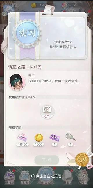 1、玩家在进入游戏的实习期中,会会碰到一次放大镜任务。