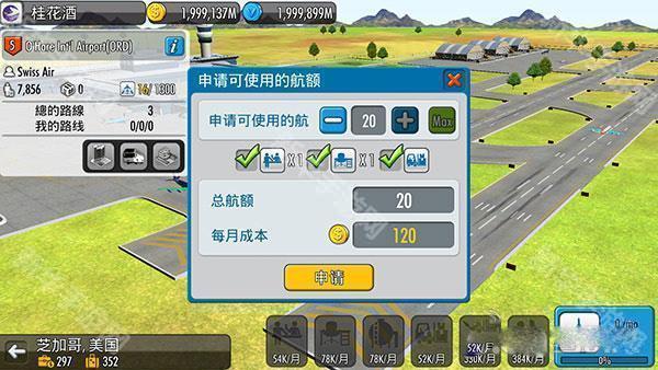 市场上会有几家航空公司,他们生成的飞机分为客运型和货运型,小型的飞机价格便宜航行距离比较近,而更远的航线需要购买能够航行更远的大飞机。不过航线要是超出现有飞机的航行距离的话,我们还可以设置中转航行路线。