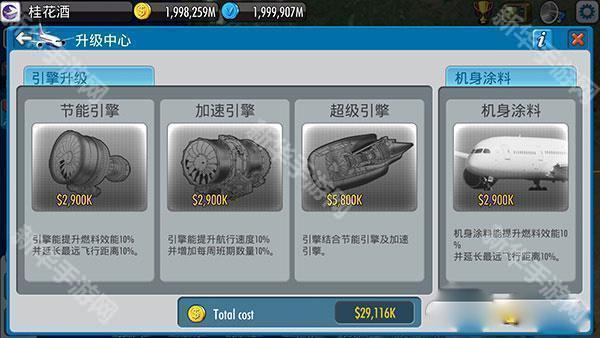 购买飞机的时候,可以根据需求来进行定制,例如扩大飞机座椅的间距、增加更多的商务舱座椅,还可以给飞机加装各种引擎以及涂装,它们可以给飞机带来附加属性。订单提交之后,需要两个回合飞机才能交付到你的手上。