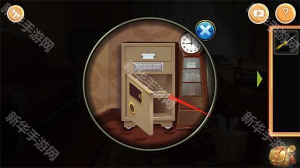 19、在时钟旁边保险柜上对应之前拼好的提示纸进行调整,然后打开后拿到里面的钥匙。