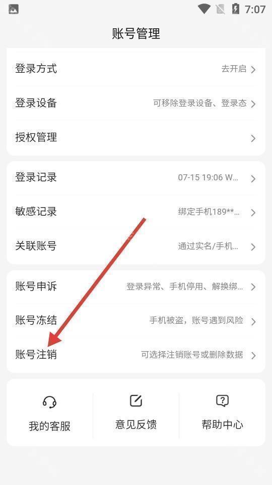 1、账号管理界面可查看登录、敏感记录,还提供账号申诉、冻结、注销功能,帮助全面管理账号安全与使用相关操作,点击该账号注销选项,即可进入后续的注销步骤。