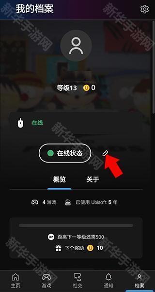 2、来到档案界面后点击在线状态旁边的铅笔按钮
