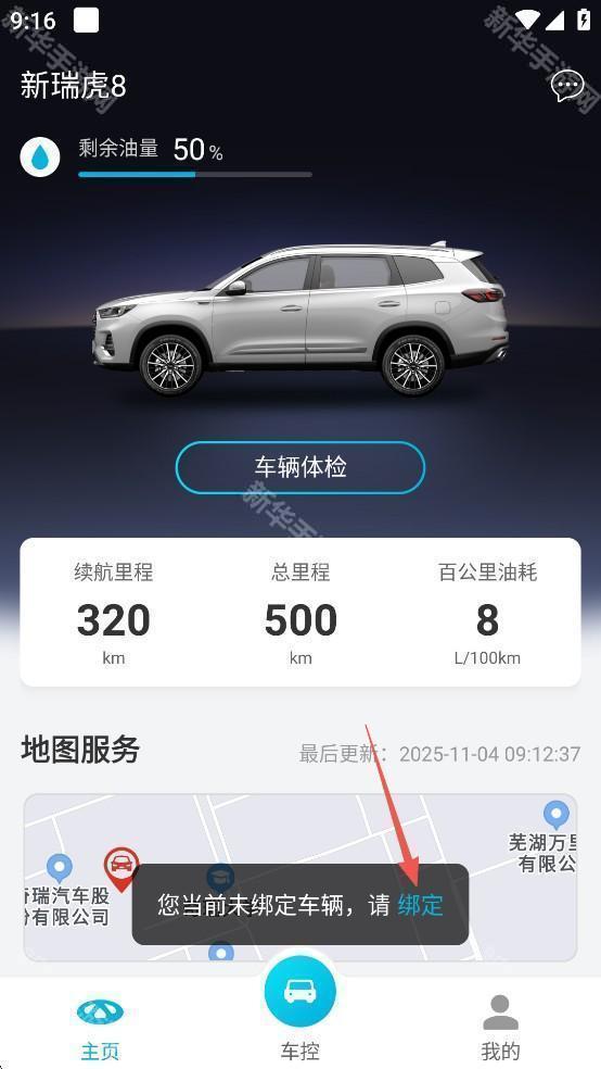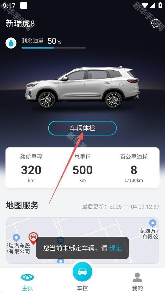 1、运行智云互联APP进入首页,点击“车辆体检”。