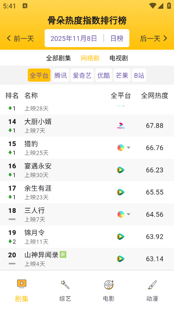 骨朵排行是一款有着海量电影资讯供您阅读,每一位用户都可以在这里看到各种影视数据的热度排行和数据分析,让用户获取信息更加准确,找出更多好剧随时观看。