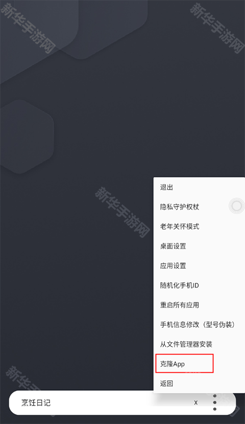 4.在伏羲x桌面克隆的app图标上长按,选择克隆app,点击中间按钮即可多开应用,操作简便快捷。