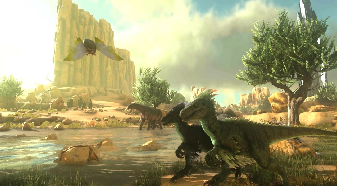 玩家可以在这个世界中吃上恐龙肉,而且玩家可以驯服恐龙,而且你还可以与好友组队,一起对战,狩猎等等,地图是无缝连接的,游戏的画质采用了虚幻4引擎,非常高清。