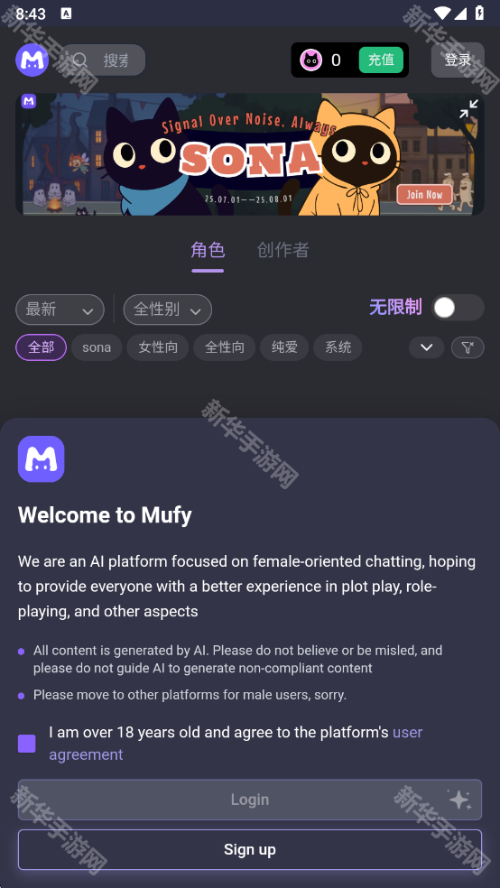 2.用户可以通过简单的筛选功能,快速找到自己感兴趣的角色,或者无限添加新角色,构建一个属于自己的虚拟世界。