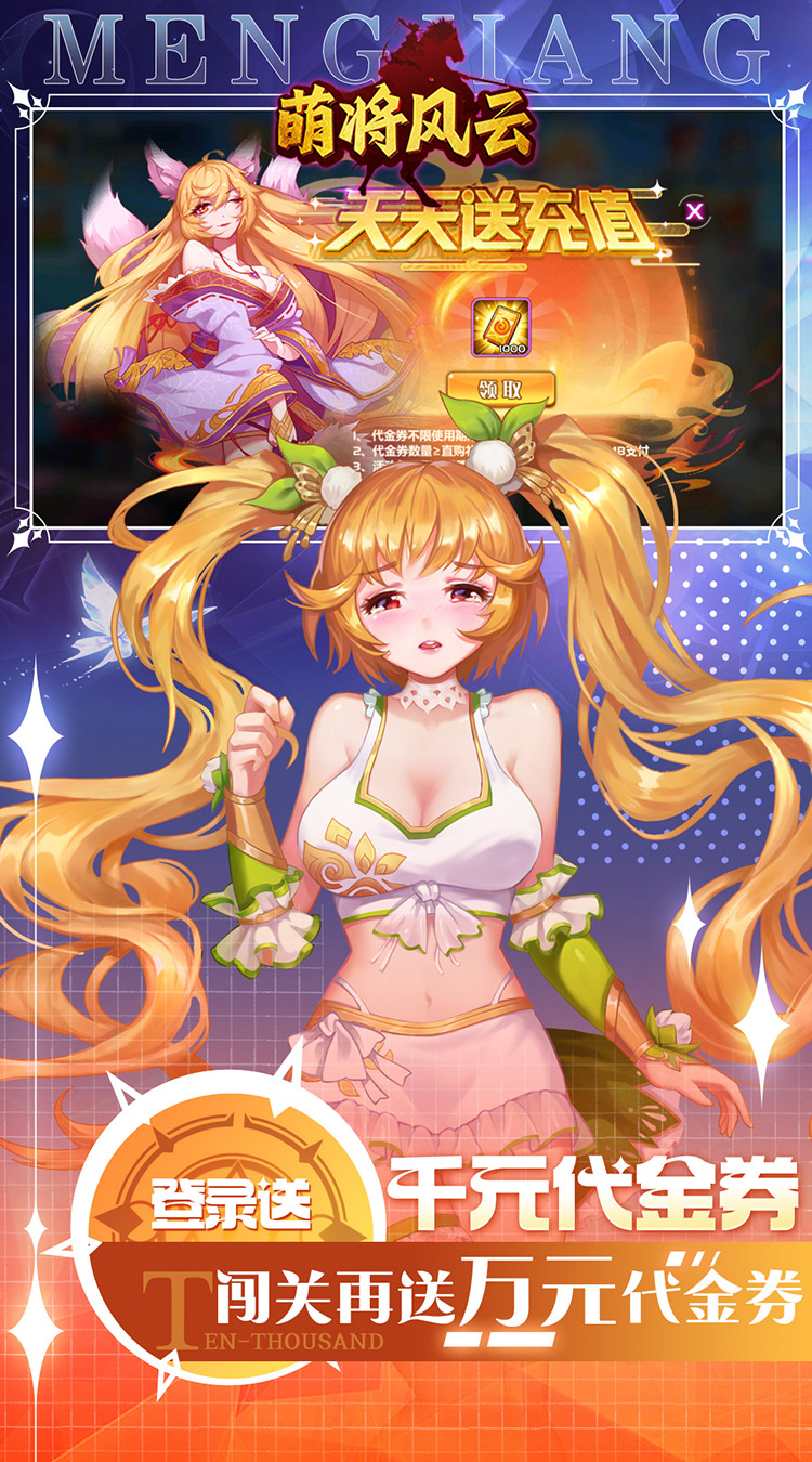 《萌将风云(0.05升级送哪吒)》这是一款角色扮演类型的游戏,游戏由“步远网络科技”工作室出品,以古代三国为背景,融入《西游记》等中国神话,控制你的角色参与战斗。会有大量的敌人、宝藏和入住礼物等着你。游戏还包括后宫系统、成长系统和国战系统,等待玩家挑战自己。每个角色都可以升级,变得更加强大,改变他们的形象。游戏带有属性克制的关系,需要玩家进行组队。