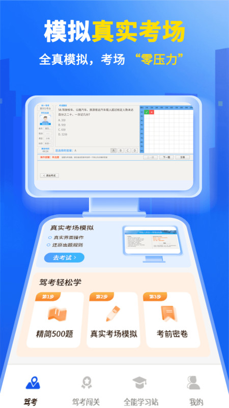 2、提供的模拟测试是对真实现场测试的模仿,方便用户在测试过程中练习;
