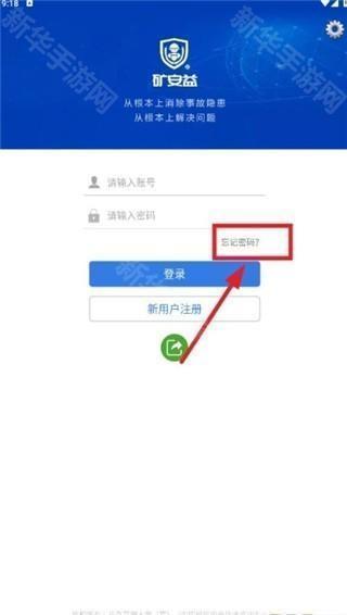 1、打开矿安益,在登录界面点击下方的忘记密码选项