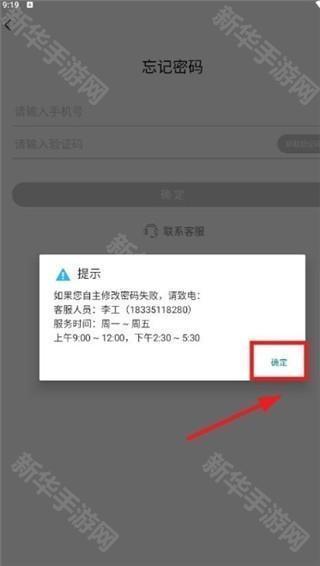 2、输入手机号和验证码点击确定,输入新的密码