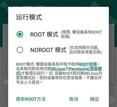 3、这时候会跳出一个选择框。根据手机权限来选择,root模式就直接点击授权就行了。免root模式需要到开发者选项中找到选择模拟位置信息应用。