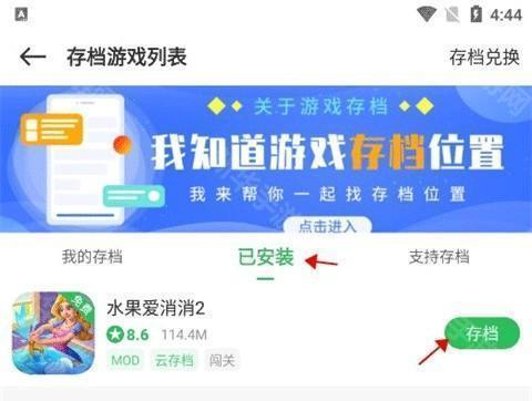 3、当我们玩了一段时间退出之后,可以来到已安装分类下点击存档;