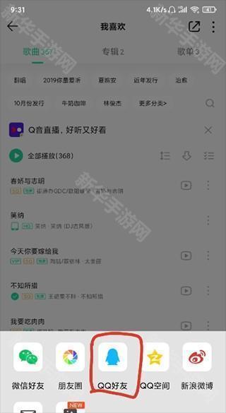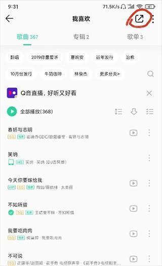 1、打开QQ音乐,打开我喜欢的列表,点击右上角分享;