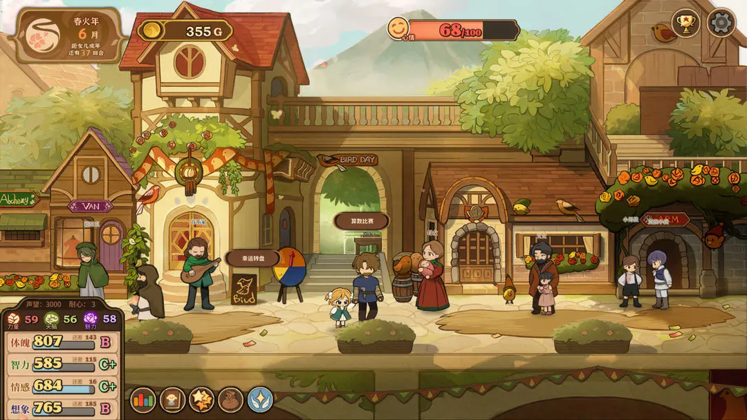 1.女儿拥有力量、智力和魅力等三维属性,可以通过完成课程和使用道具来增强。