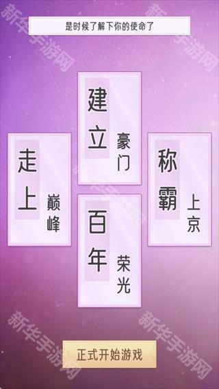 不断经营产业、培养家族成员、应对各类事件,提升家族势力,最终实现建立豪门、称霸上京、走上巅峰、铸就百年荣光的使命,让家族在你的经营下成为真正的豪门望族。