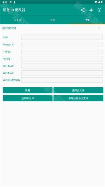 2.在修改前,用户可选择备份原始id。支持设备信息更改实现多种更改方式,如需恢复,只需点击恢复按钮即可。