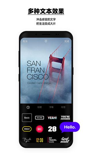 这款软件能够让用户可以使用各种不同的剪辑模板,一键生成视频,还可以添加文字、标题等等,构成最好的产品,选择高分辨率,喜欢的快来试试看吧。