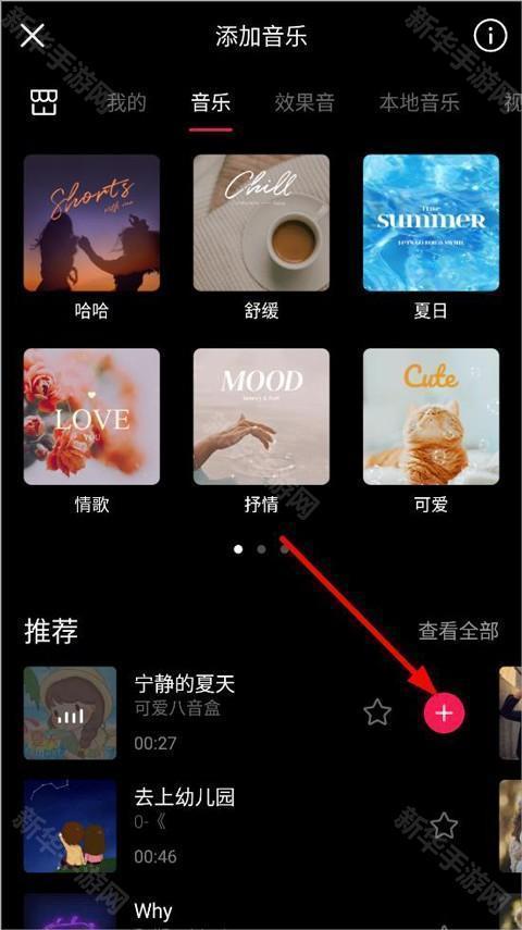 4、进入添加音乐界面,点击音乐头像,右侧展示加号点击后即可添加。