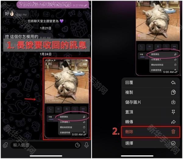 1、首先请打开对话聊天室,用手指「长按」一则要收回的消息,选择「删除」。